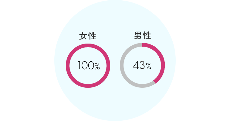男性は直近1年(2024.7-2025.6)では43%の方が取得しました。
