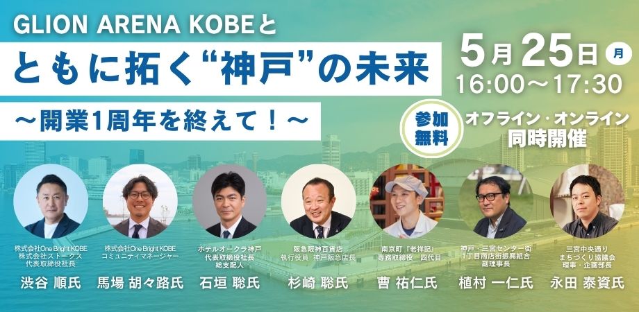 本セミナーでは、GLION ARENA KOBE開業1周年と神戸ストークスのB.LEAGUE 2025-26シーズンを終えての振り返りに加え、アリーナを基点とした新たなまちづくりの形や、神戸全体の価値向上に向けた今後のビジョンについて深く掘り下げてまいります。